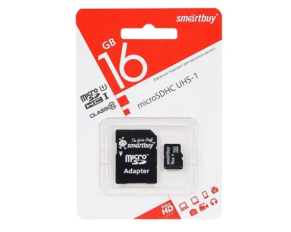 Карта памяти MicroSDHC SmartBuy 16GB cl10 UHS-I + SD, SB16GBSDCL10-01