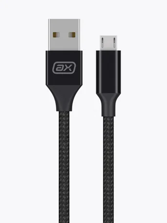 Кабель Axxa, USB-A - MicroUSB, нейлон, 2А,1м, черный, 7261 в Красноярске