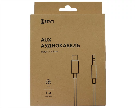 Аудиокабель Kstati USB-C - AUX 3.5мм, 1м белый Аудиокабель Kstati USB-C - AUX 3.5мм, 1м белый