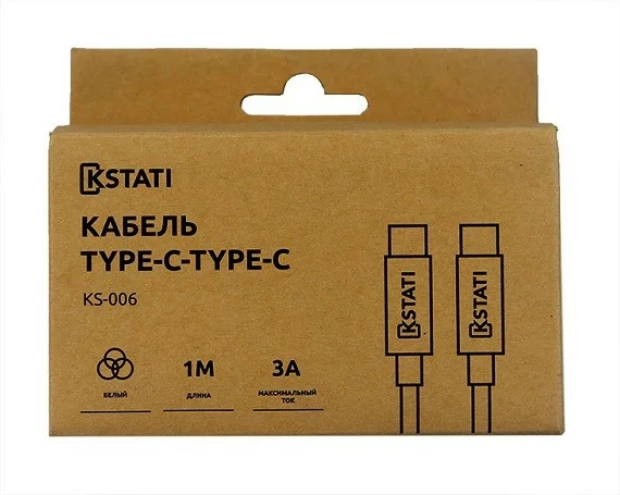 Кабель Kstati KS-006 USB-C - USB-C, белый, 1м, 3А Кабель Kstati KS-006 USB-C - USB-C, белый, 1м, 3А