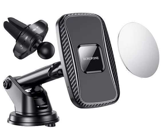Автомобильный держатель Borofone BH35 магнитный черный с QI (крепление на панель, дефлектор)