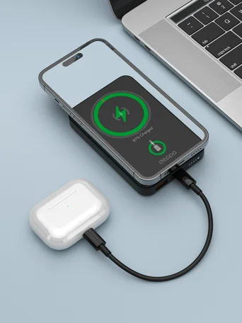 Внешний аккумулятор 10000 mAh Deppa NRG, MagSafe, Basic, QI, 15W, черный, 33667