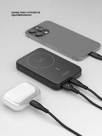 Внешний АКБ 10000 mAh Deppa NRG, MagSafe, Basic, QI, 15W, черный, 33667 в Красноярске