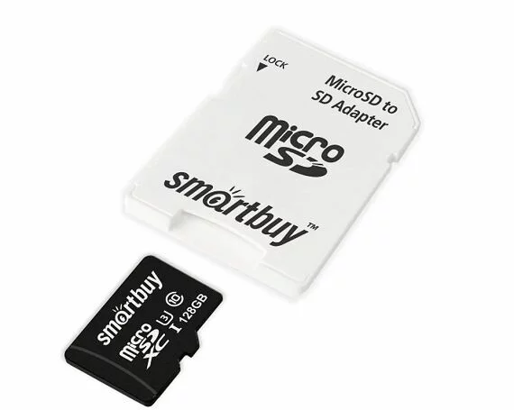 Карта памяти MicroSDXC "SmartBuy" 128GB U3 V30 A1 + SD, SB128GBSDU1A-AD