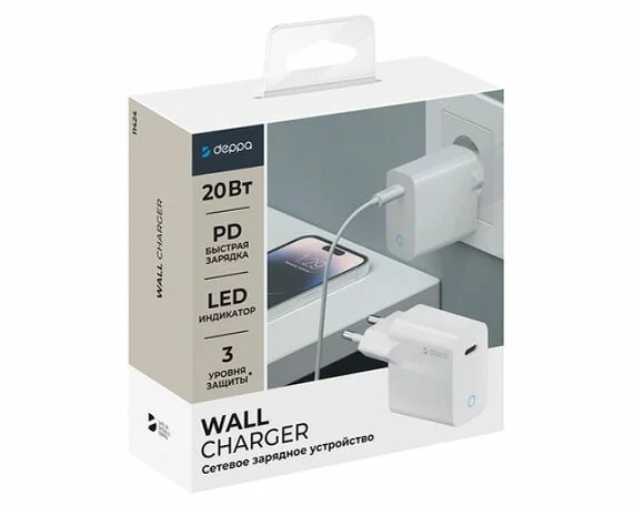 СЗУ 1USB-C Deppa, PD, 20W, белый, 11424 в Красноярске