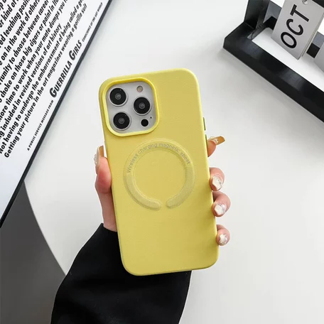 Чехол iPhone 14 Pro Max Leather Candy MagSafe (желтый) Чехол iPhone 14 Pro Max Leather Candy MagSafe (желтый)