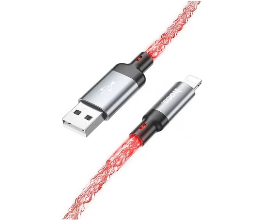 Кабель Hoco U112 Lightning - USB светящийся серый, 1,2м в Красноярске