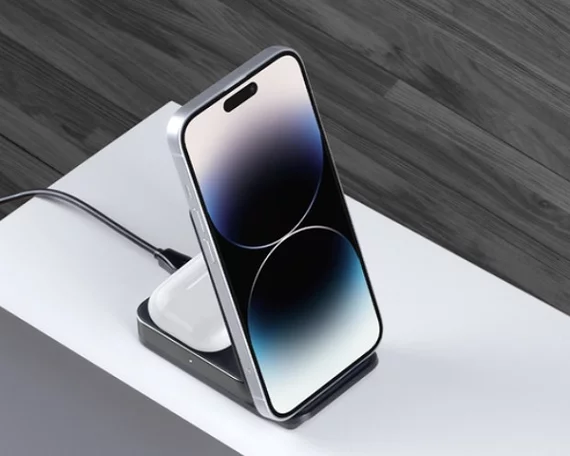 Зарядная станция 2в1 Deppa Qi iPhone, Airpods, беспроводная 20W, графит, 24027
