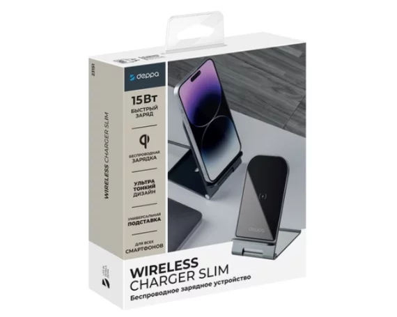 Зарядная станция Deppa Slim QI 15W складная, графит, 23151