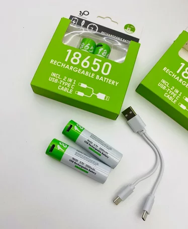 Аккумулятор 18650-2BL 3.7В, 2000 mAh, Li-Ion, с зарядным USB type-C кабелем, 2 штуки