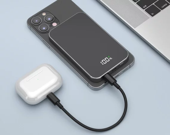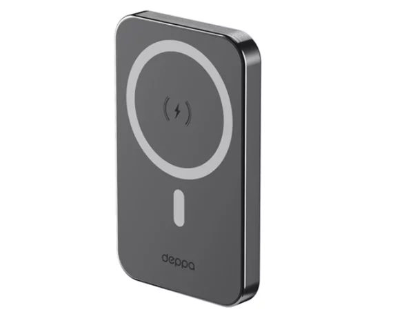 Внешний аккумулятор 5000 mAh Deppa, NRG MagSafe, QI 20W, дисплей, черный, 33664