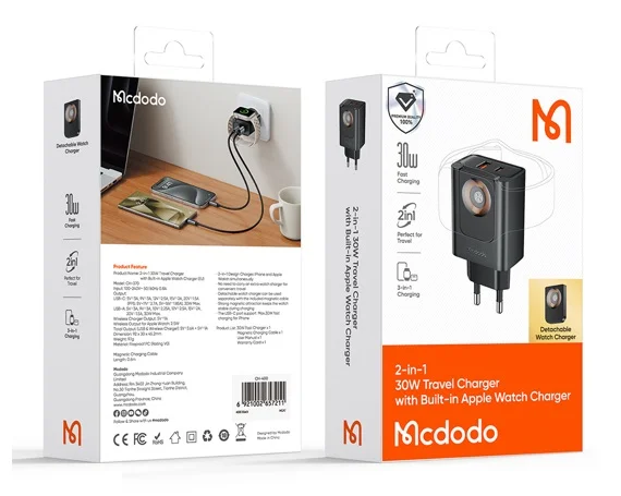 СЗУ 1USB-A +1USB-C+Apple Watch McDodo CH-3700, 30W, черный в Красноярске
